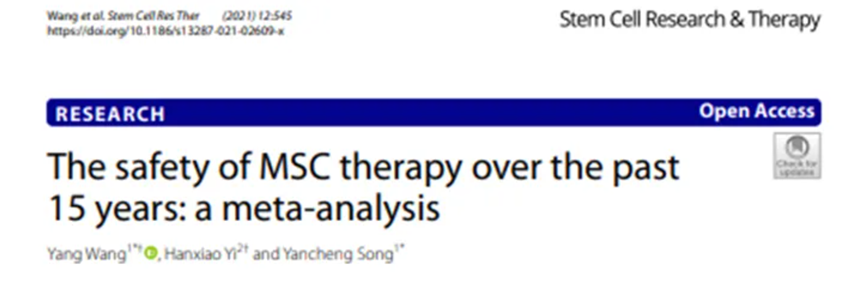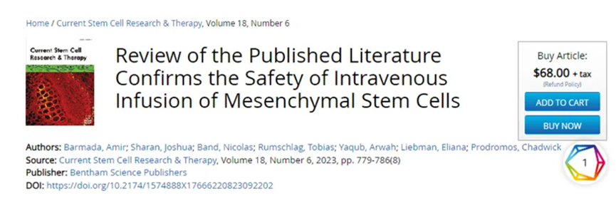 2023年,美国研究人员在《Current Stem Cell Research & Therapy》杂志上发表综述证实静脉回输间充质干细胞的安全性[6]。