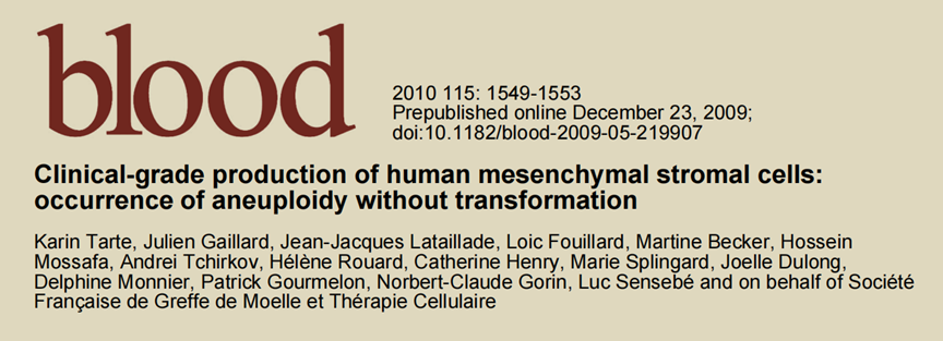 2010年,来自法国的13个科研单位联合在《Blood》杂志上发表了一篇实验文章,进一步确认了MSCs的安全性。他们的研究发现,尽管MSCs在体外培养过程中可能会出现染色体异常,但这些异常并不会导致肿瘤的形成[1]。