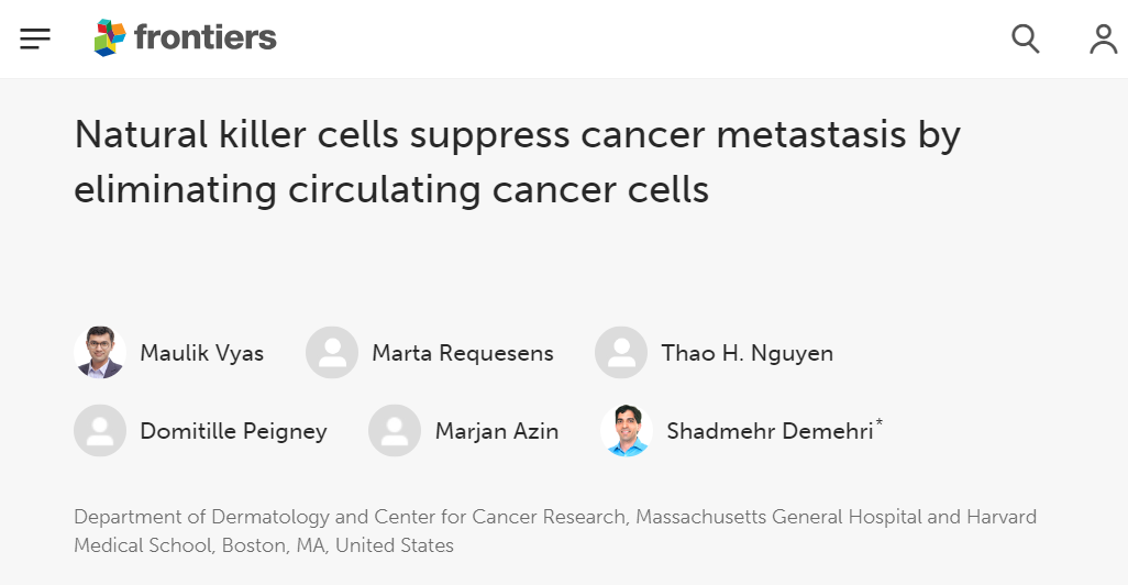[3]Maulik Vyas,Marta Requesense,et,al.Natural killer cells suppress cancer metastasis by eliminating circulating cancer cells.https://www.frontiersin.org/journals/immunology/articles/10.3389/fimmu.2022.1098445/full