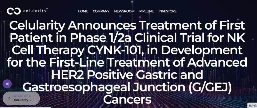 2022年7月,Celularity生物技术公司宣布,NK细胞疗法CYNK-101的1/2a期临床试验已经完成了首例患者给药,该临床试验针对晚期HER2阳性胃或胃食管交界处(G/GEJ)癌症的一线治疗。